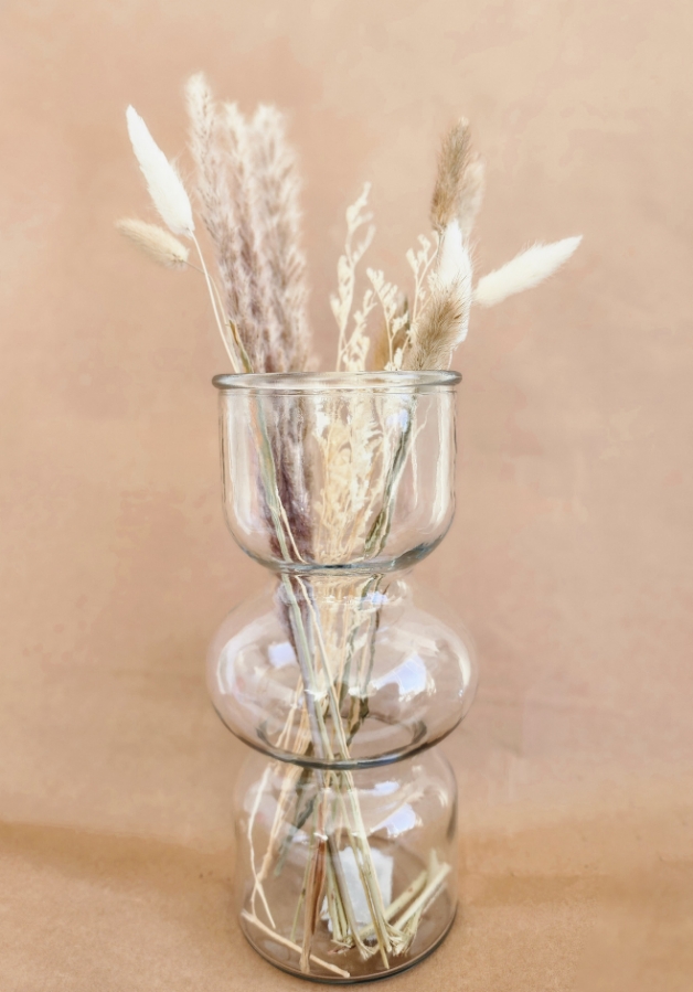 فازة زجاجية شفافة معرجة طول٢٥سم