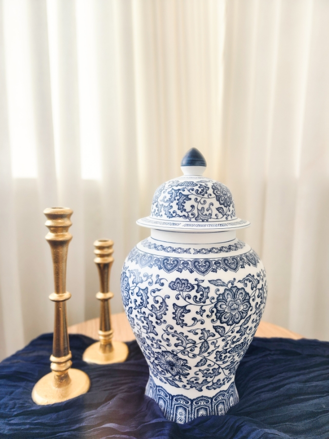 فازة زجاجية مزخرفة مع غطاء باللون الازرق