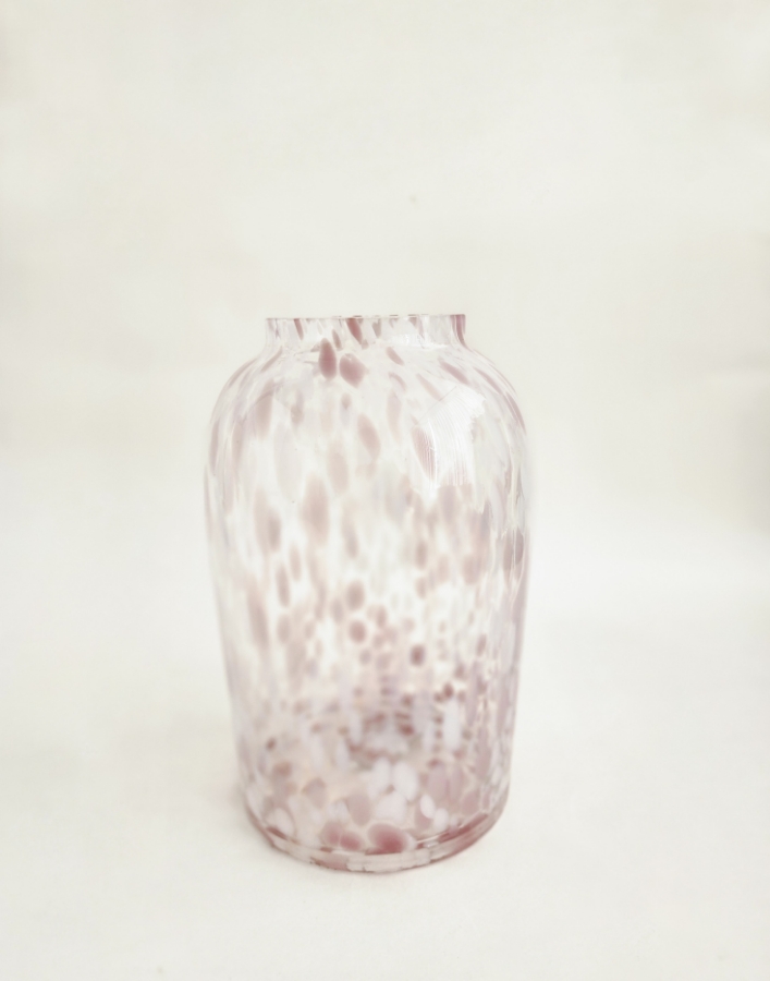 فازة زجاجية منمرة باللون الزهري طول ٢١ سم