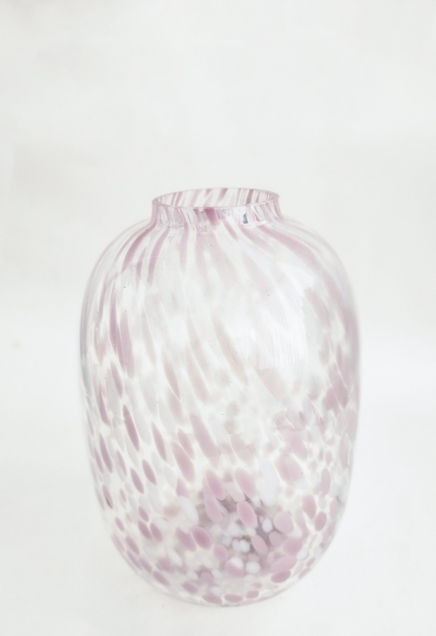 فازة زجاجية منمرة باللون الزهري طول ٣٠سم