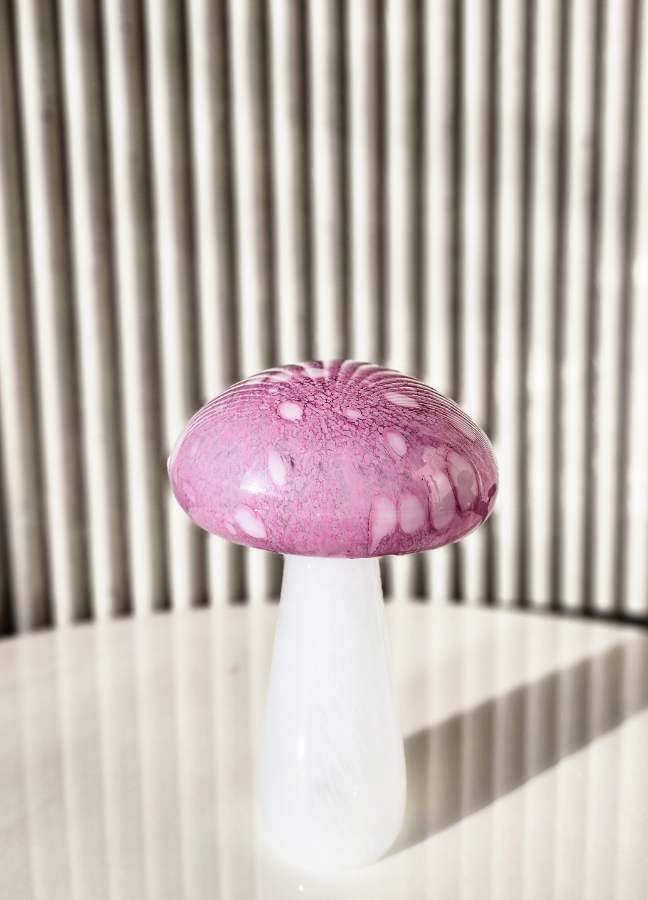 تحفة زجاجية على شكل فطر باللون الزهري