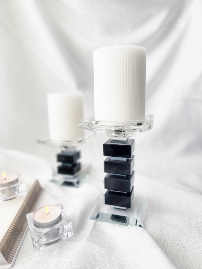 شمعدان زجاج باللون الاسود طوله 15 سم