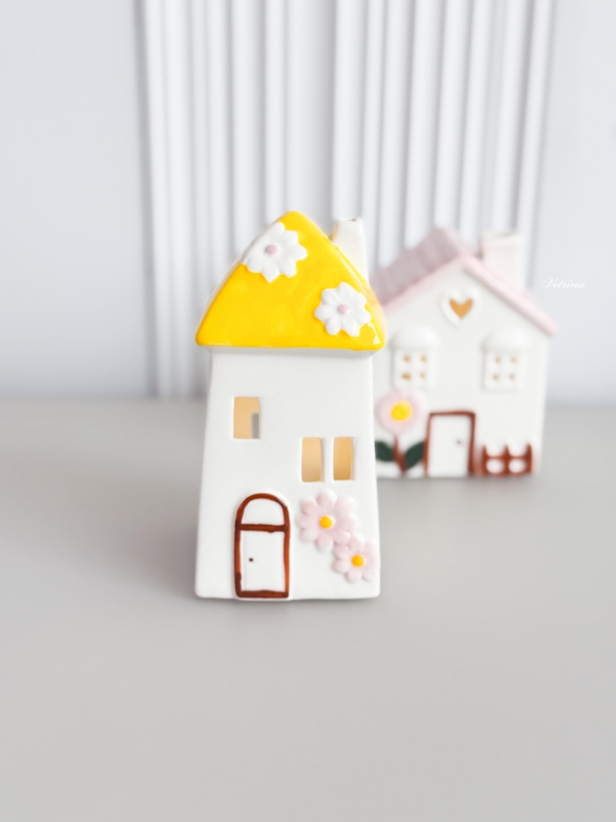 بيت مضيء لون ابيض مع ورود