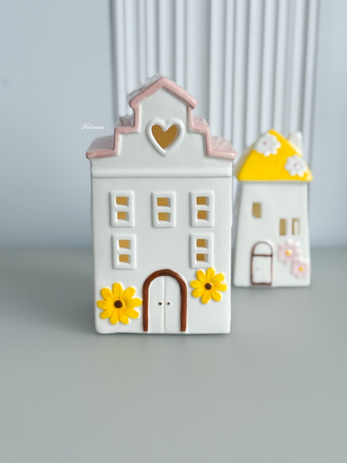 بيت مضيء لون ابيض وزهري مع ورود