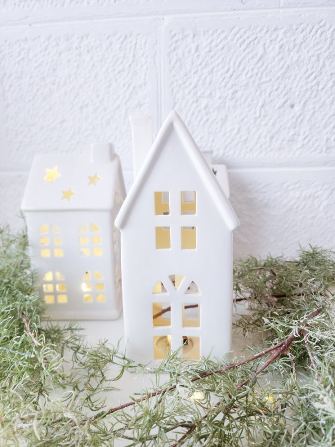 تحفة سيراميك بيضاء مضيئة على شكل بيت