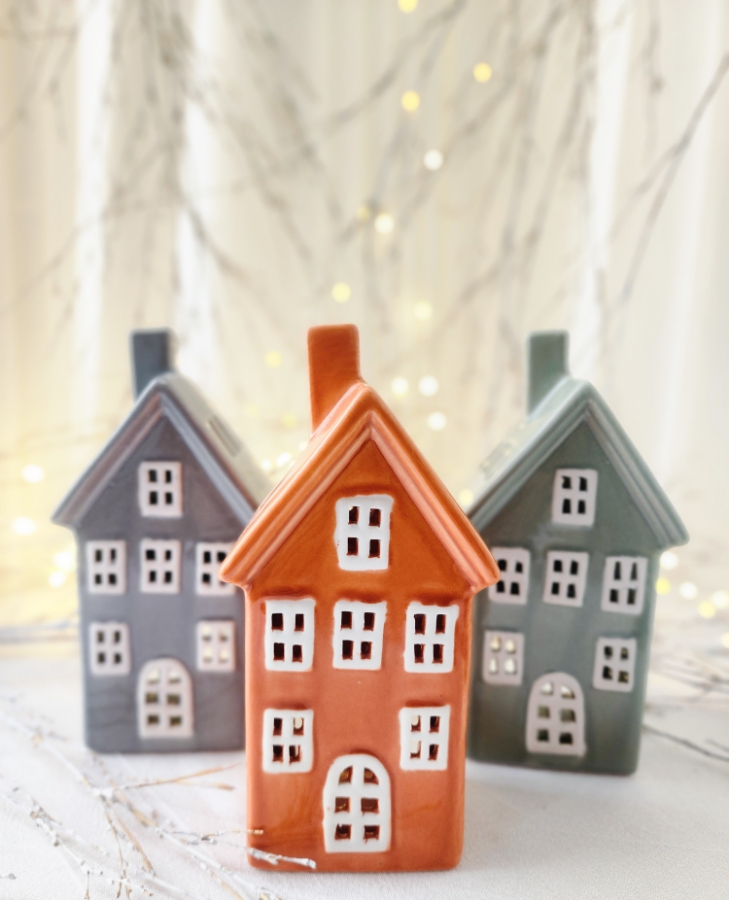 تحفة على شكل بيت بثلاث الوان برتقالي و اخضر و سكني
