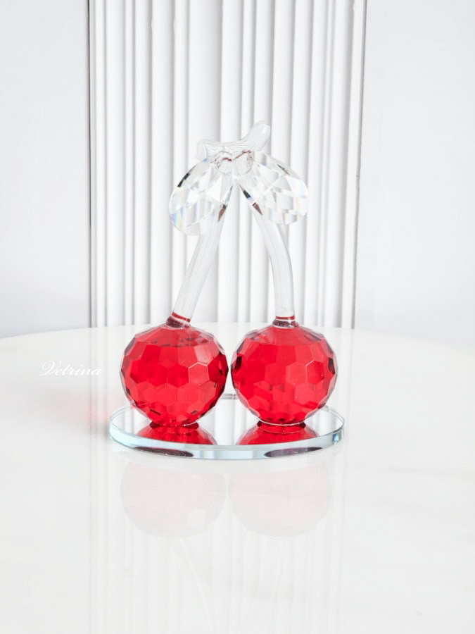 تحفة كرستال شكل كرزة حجم كبير لون احمر
