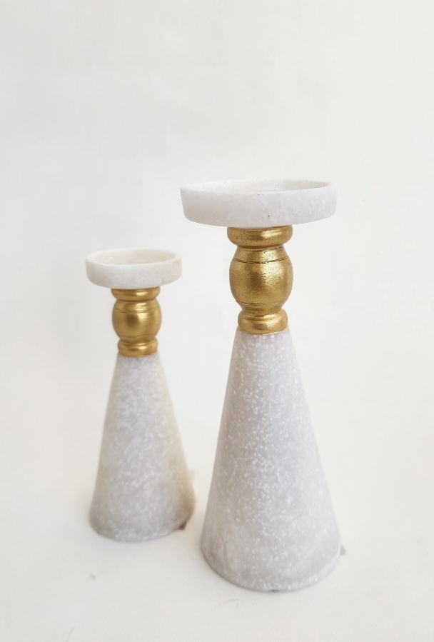 شمعدان ريزن باللون الابيض والذهبي طول ٢٢سم