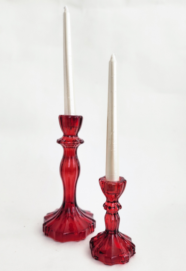 شمعدان زجاجي باللون الاحمر طول ١٢سم