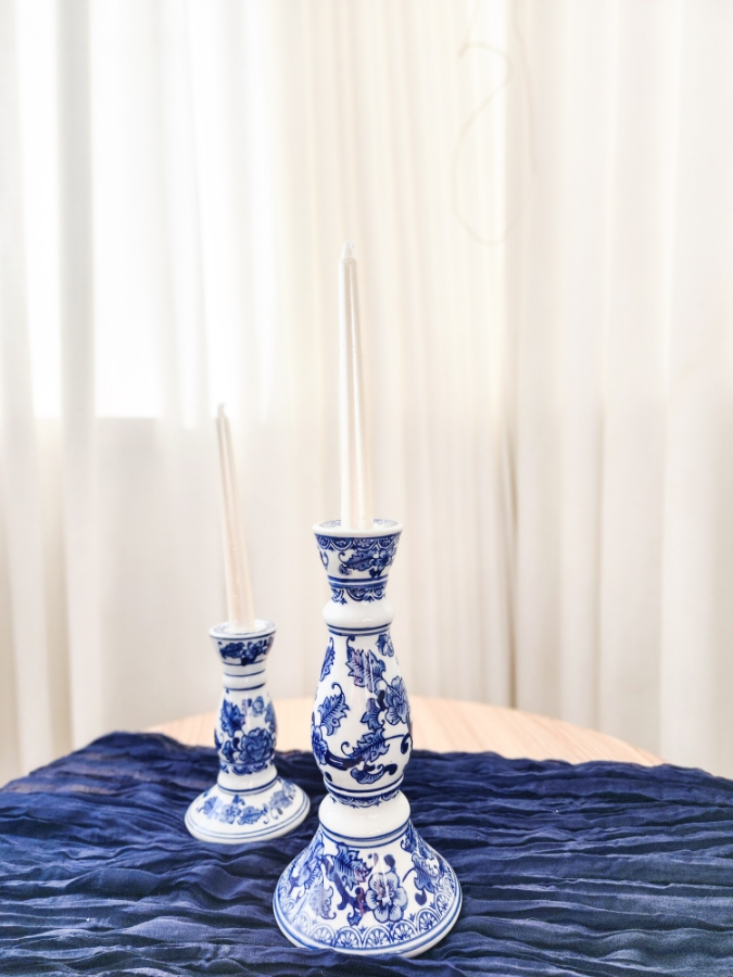 شمعدان زجاج مزخرف بالازرق الحجم الكبير