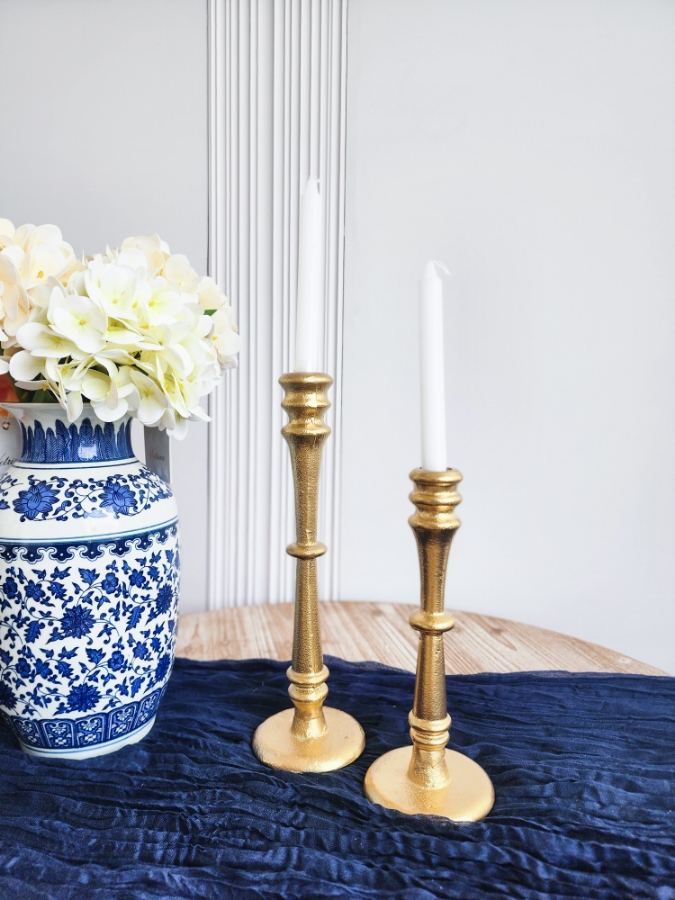 طقم شمعدانات قطعتين نحاس باللون الذهبي