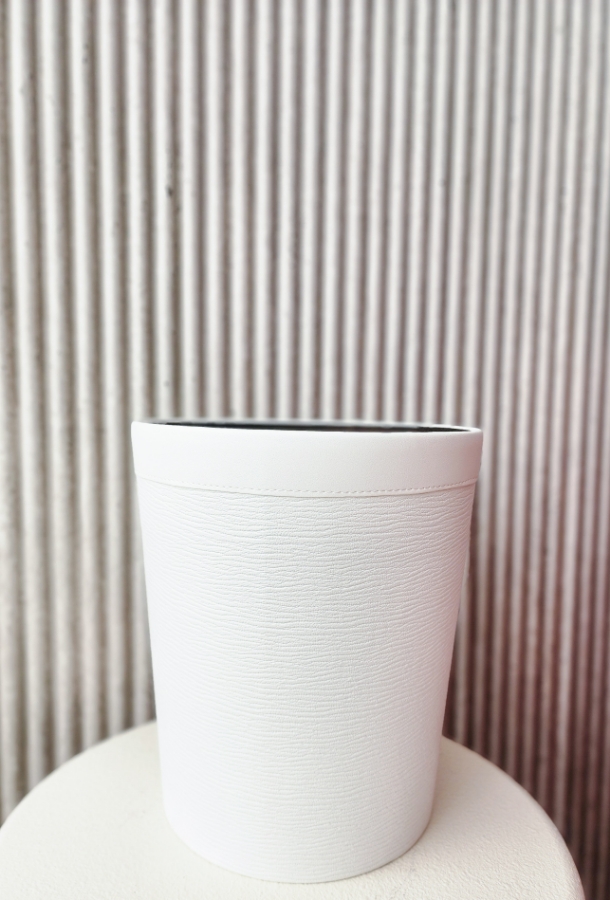 سلة مهملات جلد باللون الابيض
