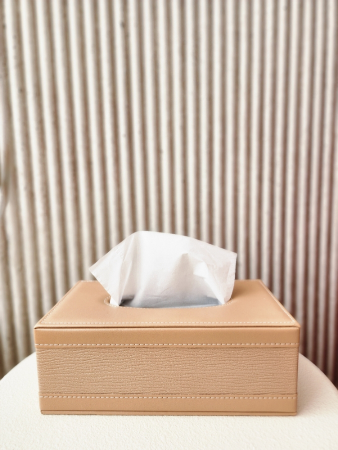 علبة محارم جلد باللون العسلي