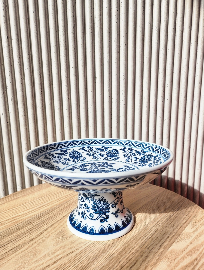 ستاند ديكور زجاجي مع زخرفة باللون الازرق