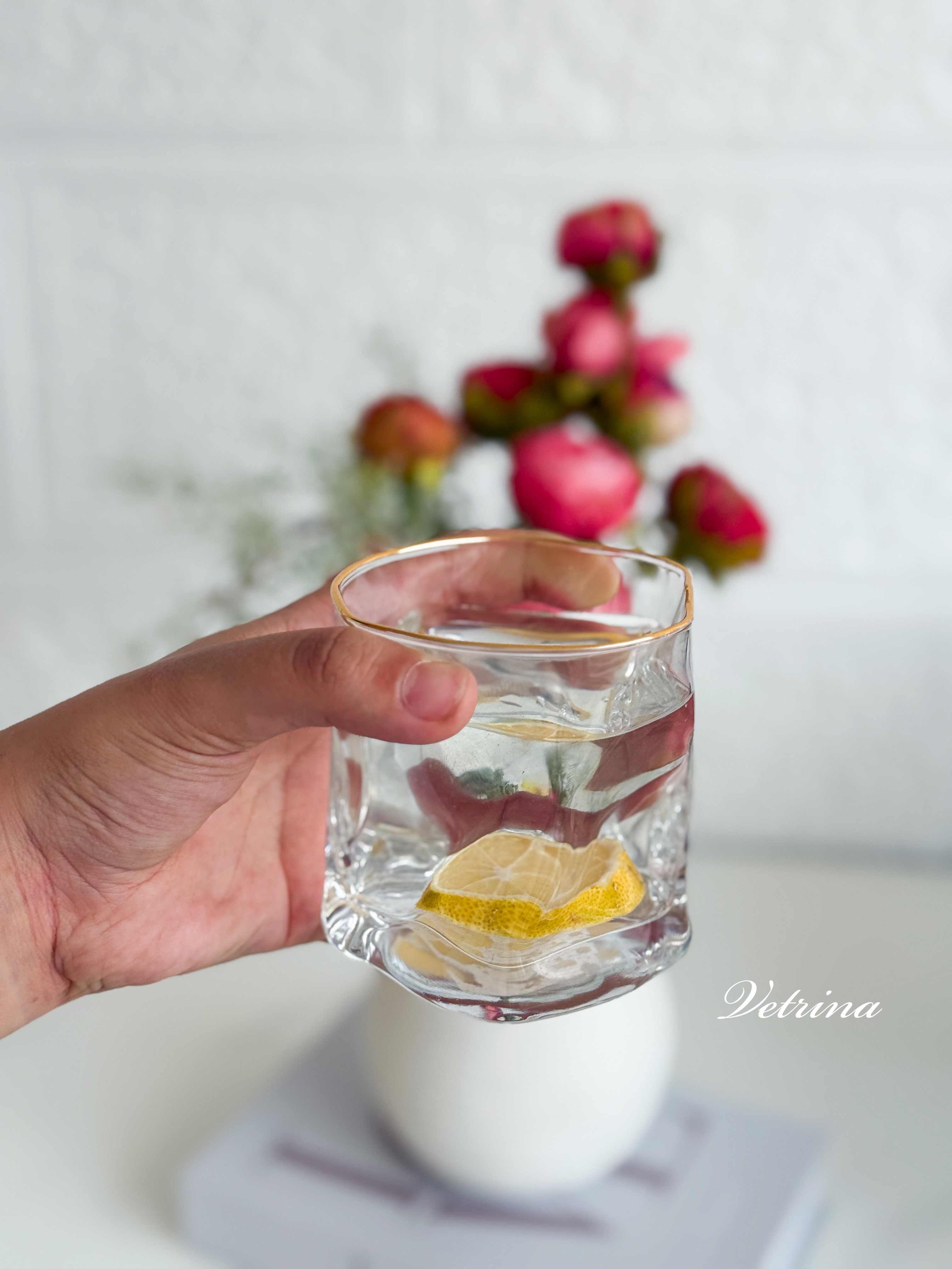 طقم كاسات زجاج مموجة مع خط ذهبي - 6 قطع