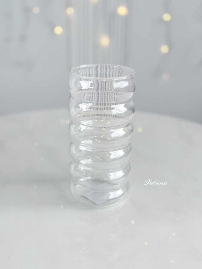 كوب زجاج شفاف مموج طويل