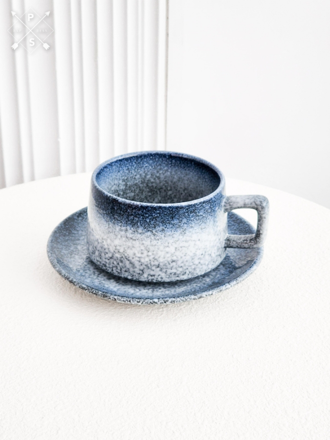 كوب سيراميك مع صحن توشيحة ازرق