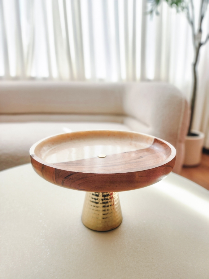مضيفة خشبية دائرية قسمين خشب و ريزن مع قاعدة ذهبية