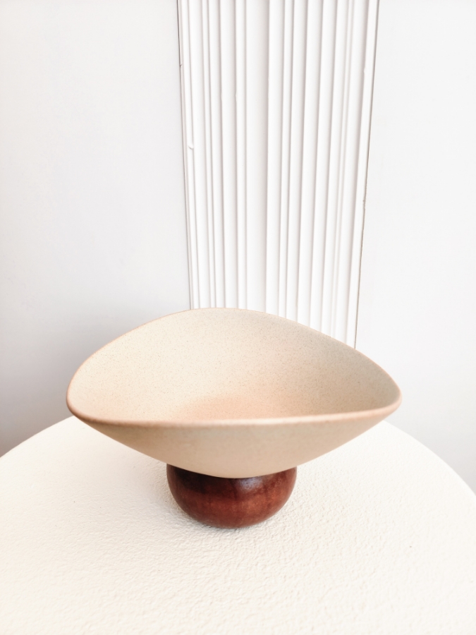 مضيفة دائرية جبصين مع قاعدة خشبية