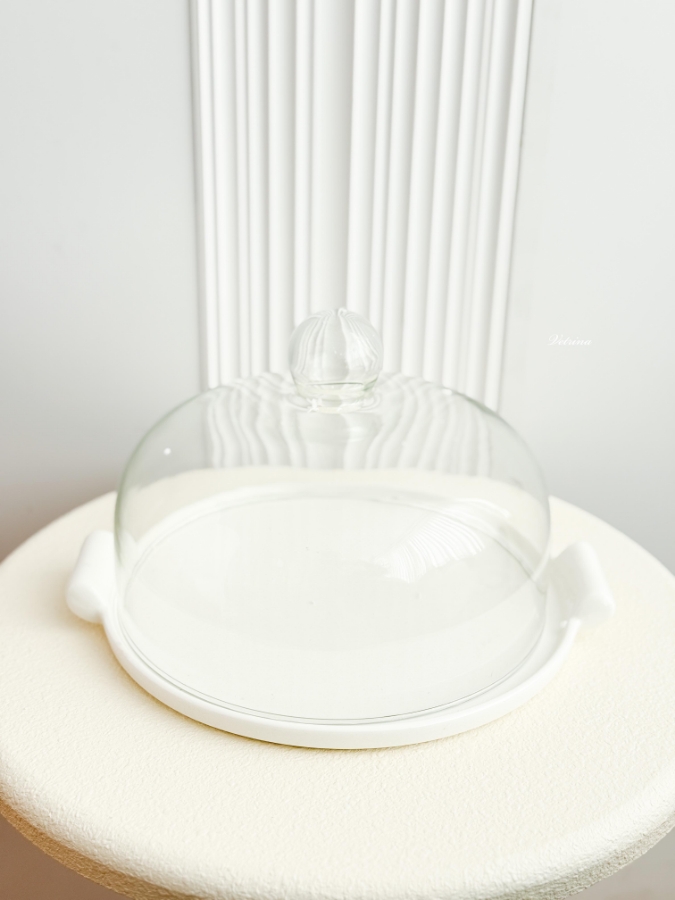 مضيفة زجاج ابيض غطاء شفاف زجاج