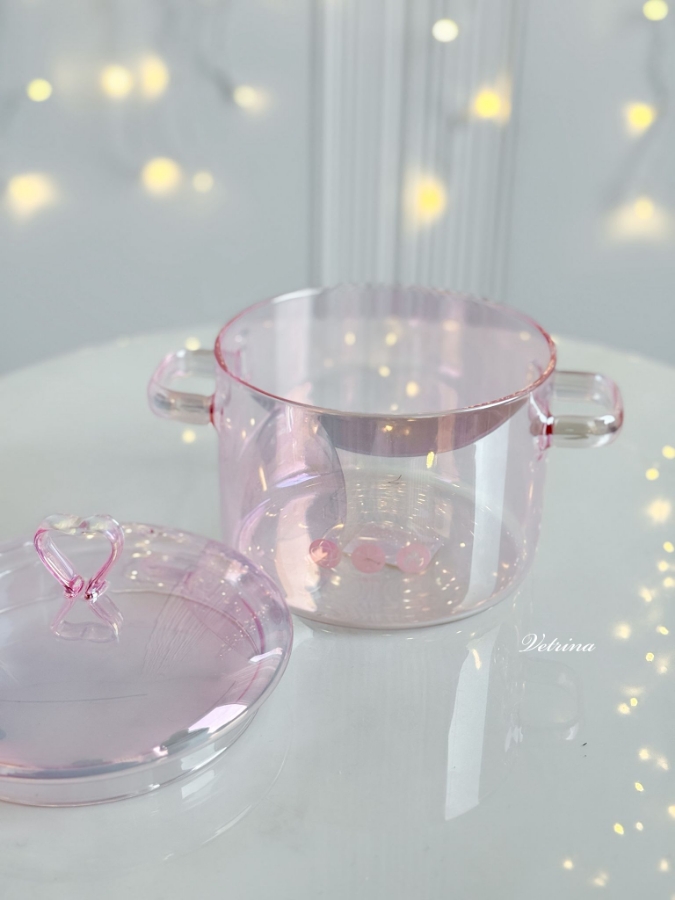 طنجرة زجاج شفافة لون زهري