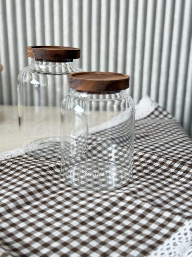 علبة تخرين زجاج شفاف غطاء خشب حجم وسط