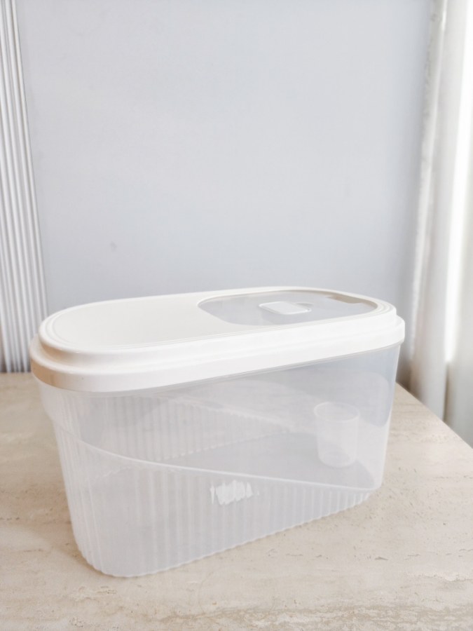 علبة تخزين بلاستيك مع غطاء ابيض