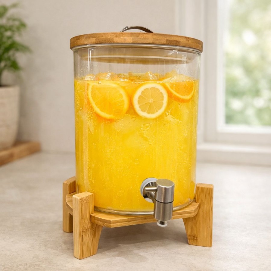 موزع مشروبات زجاج قاعدة خشب غطاء خشب