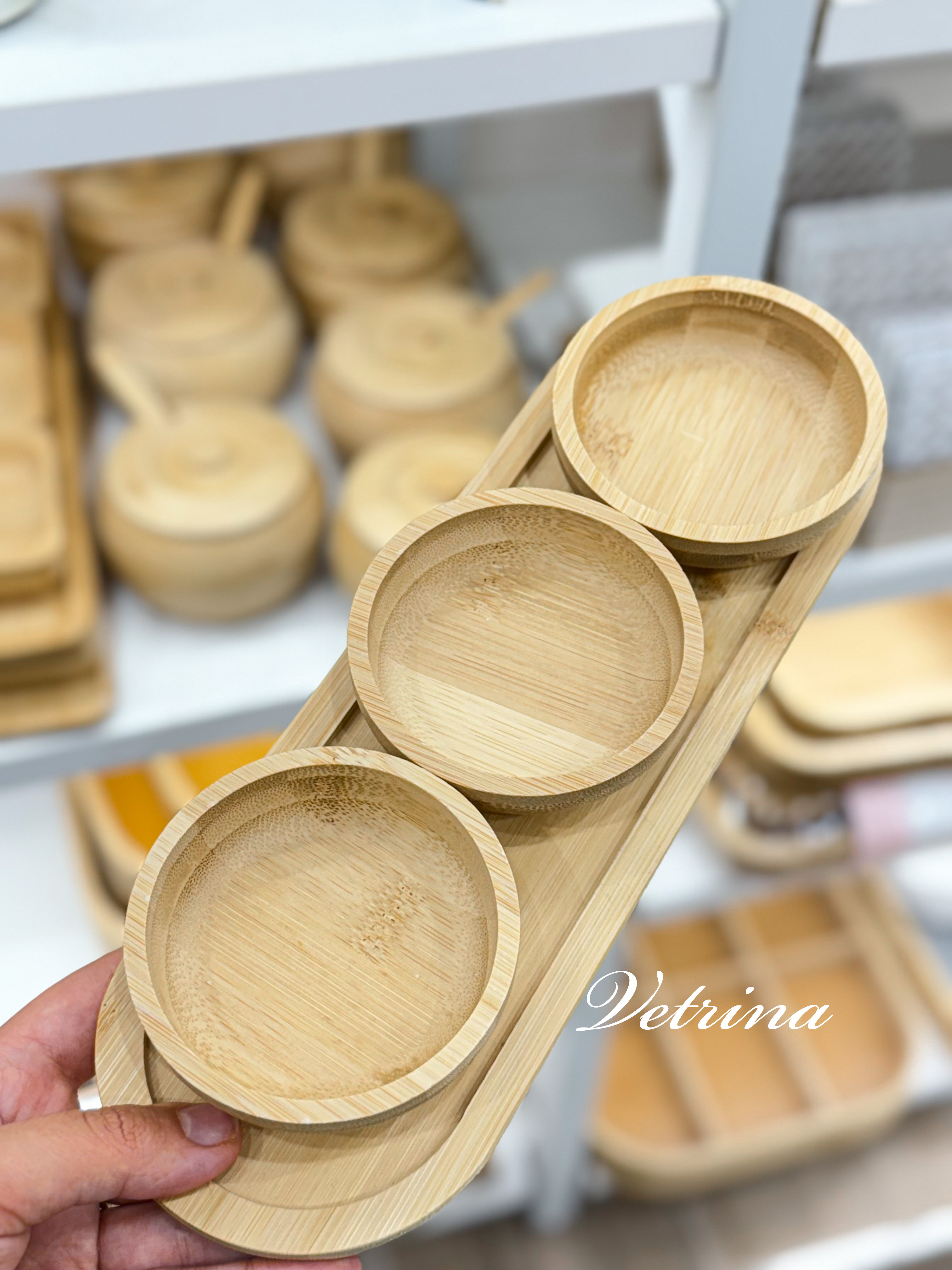 صحون تقديم خشب مدور مع قاعدة