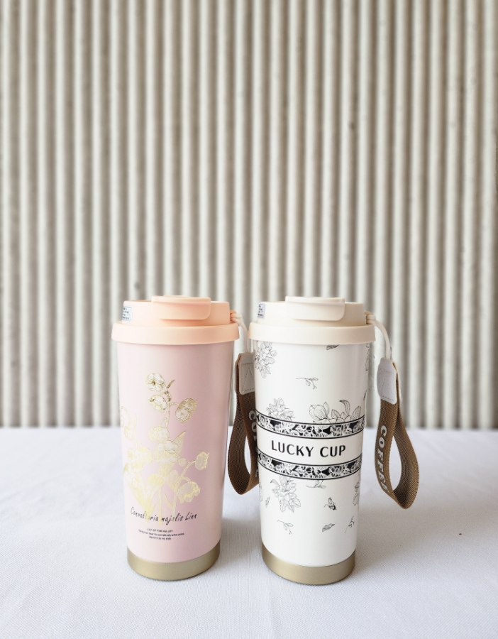 حافظة مشروبات السخنة باللونين البيج و الزهري 520مل