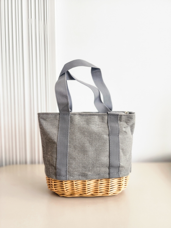 حقيبة طعام باللون الرمادي مع قش