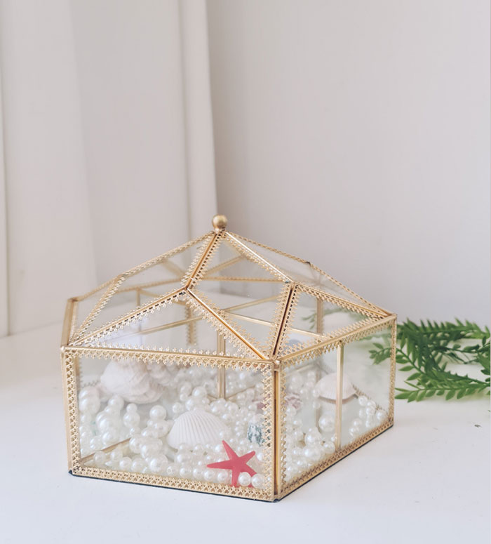 صندوق زجاج شكل سداسي بإطار ذهبي حجم كبير